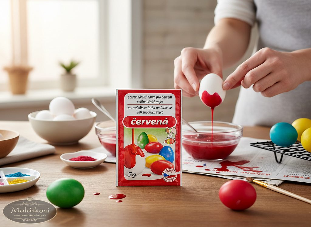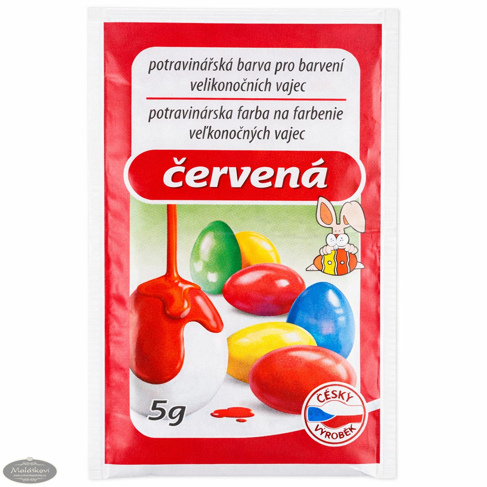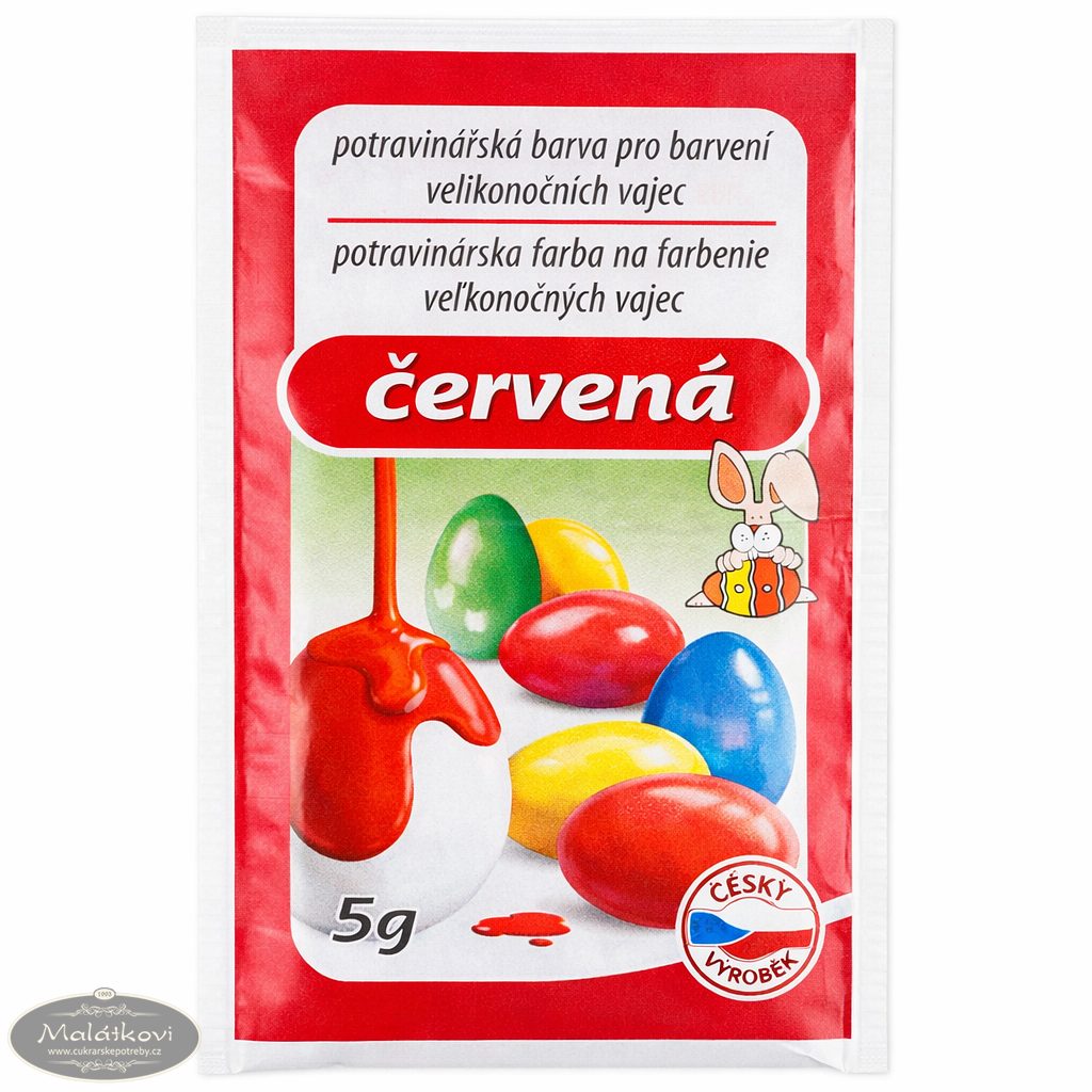 Prášková červená barva určená k barvení velikonočních vajíček. Intenzivní odstín zajistí syté a rovnoměrné obarvení skořápek pro tradiční i moderní velikonoční výzdobu.