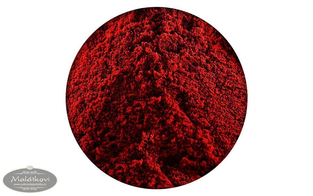 Sytě červené barvivo můžete použít pro obarvení potahovacích a modelovacích hmot i pro kreslení na hladkých plochách těchto hmot. Barvou můžete obarvit i krémy určené pro zdobení. Při zapracování barvy do potahovacích a modelovacích hmot lehce zřeďte prášek pár kapkami vody. Pro větší hutnost a pružnost hmoty můžete použít prášek Tylo. Propracovanou hmotu nechte uležet pevně zabalenou v potravinářské fólii tak, aby se k ní nedostal vzduch. Pro dekoraci lze barvu smíchat s trochou alkoholu. Štětcem nanášejte požadované linky. Nechte pár hodin zaschnout. Tato barva se hodí na dekoraci, pro vytváření autíček, oblečků pro 3D figurky, pro zvýraznění motivů na dortech a dalších dekoracích.