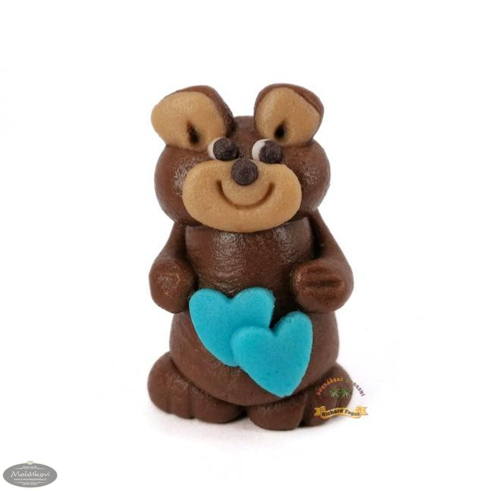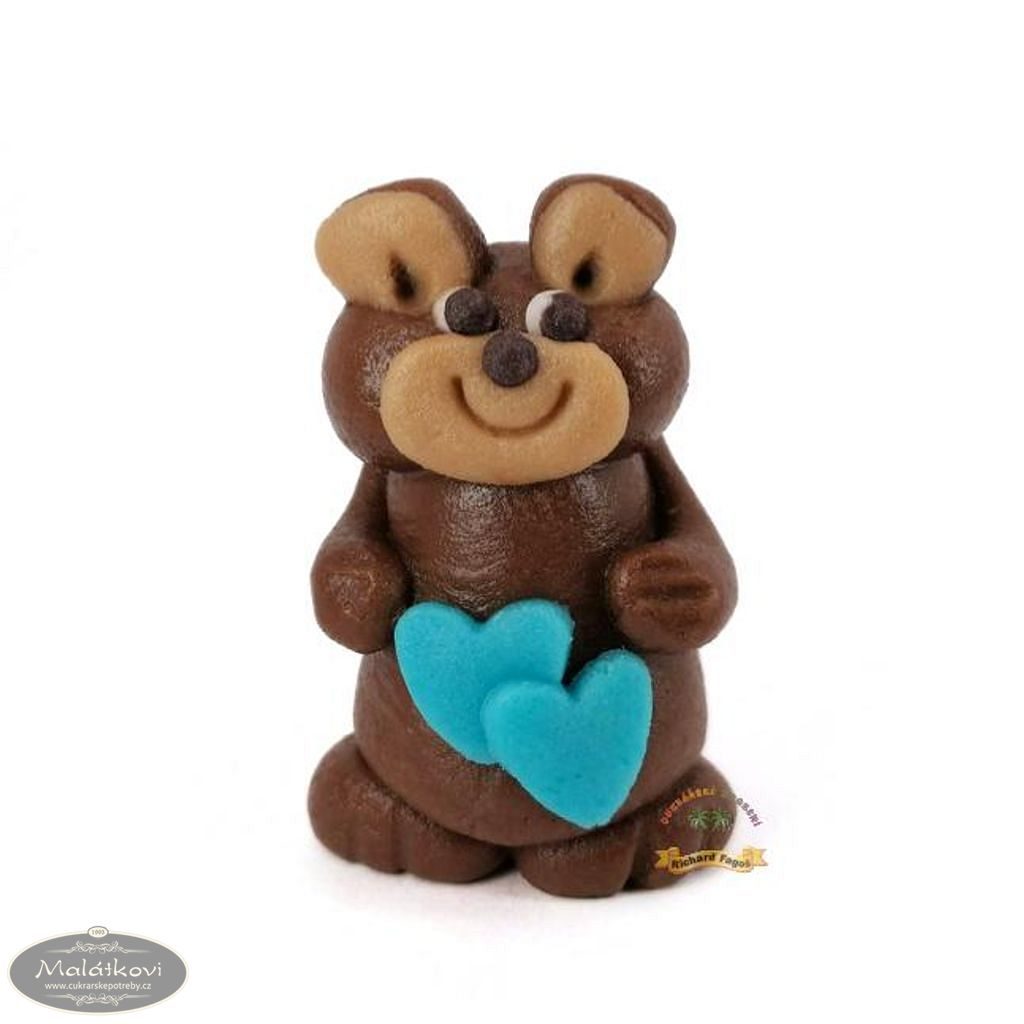 Příležitostná postavička - Medvídek tmavě hnědý s modrými srdíčky