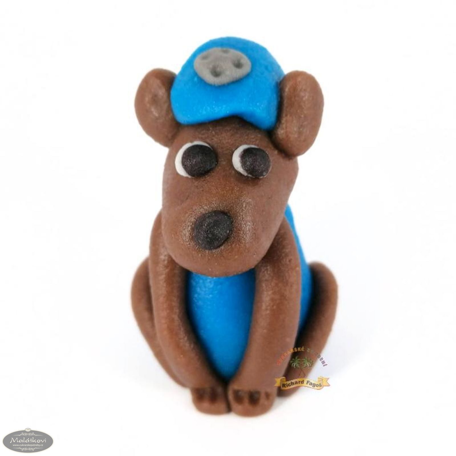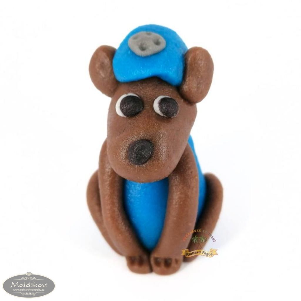 Ručně vyrobená psí postavička z kokosové modelovací hmoty s příchutí aroma sladkých mandlí. K použití na dort. Hmotnost: 30g. Výška: 5cm. Šířka: 3,5cm