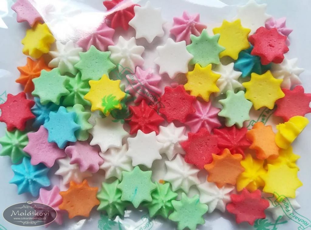 Cukrová dekorace určená ke zdobení cukrářských dezertů, dortů a zmrzlin. Velikost pucky cca 1 cm.