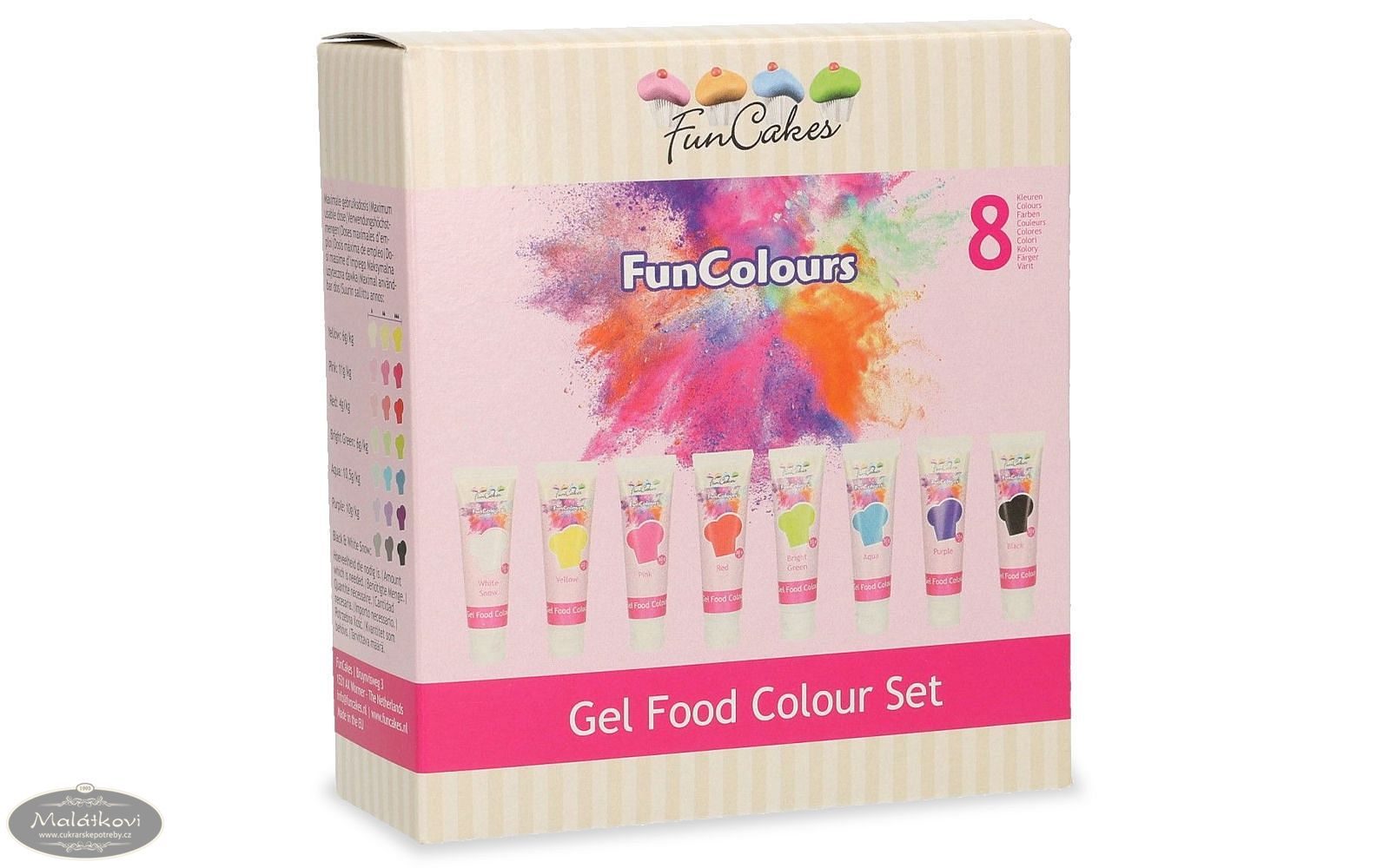 Sada vysoce koncentrovaných potravinářských barev na bázi glycerinu, vhodná na probarvení potahovacích hmot, marcipánu, krémů. Baleno ve znovu uzavíratelné tubě. Řada FunColours by FunCakes dodá vašim dortům vynikající vzhled a dojem. Výrobky jsou k dispozici v široké škále různých barev, 100% jedlé, certifikované Halal a snadno použitelné.