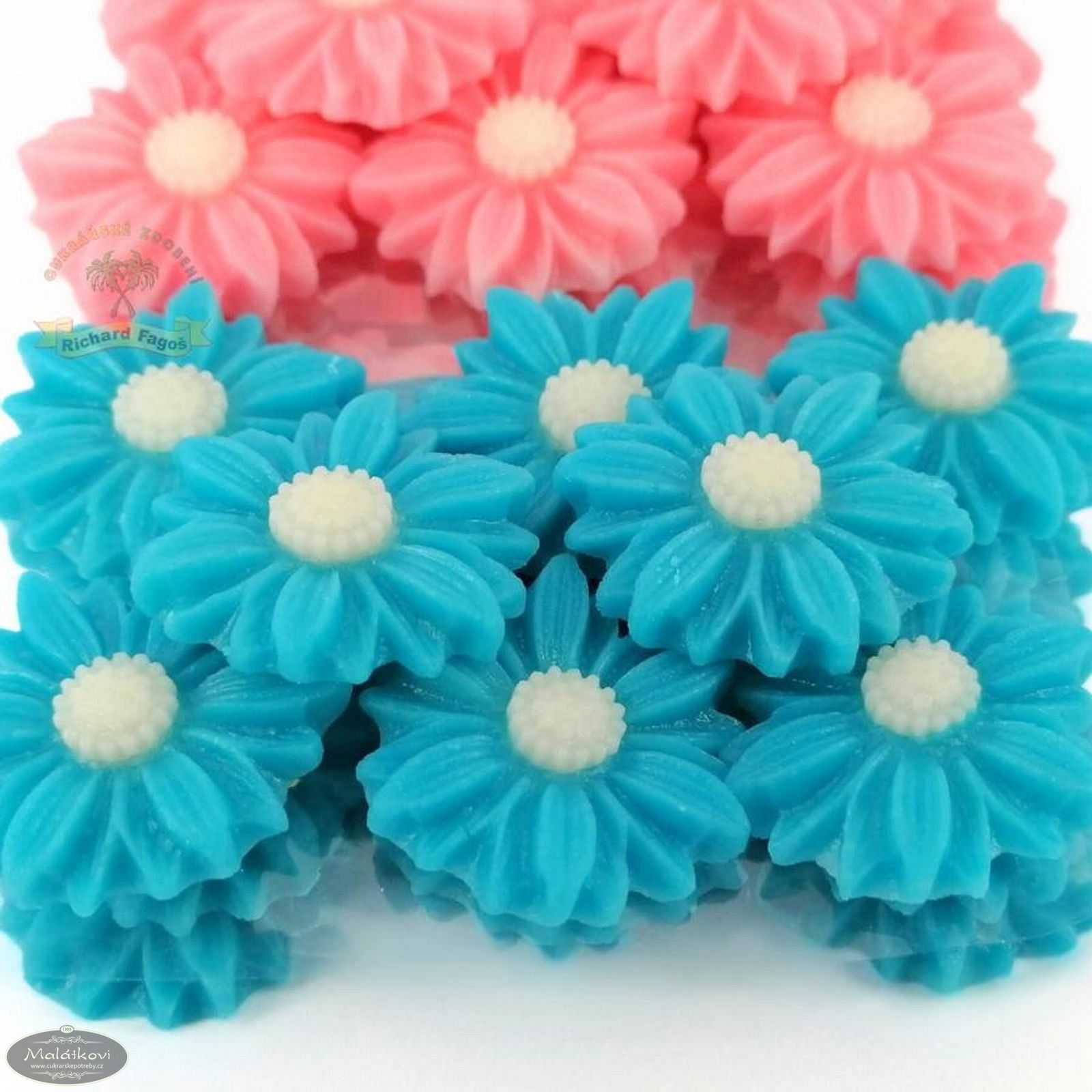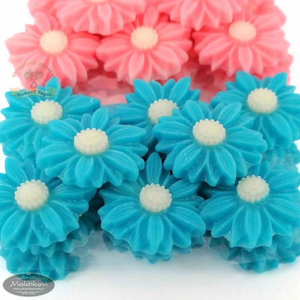 Ručně vyrobená kytička z kokosové modelovací hmoty s příchutí aroma sladkých mandlí. Použití na dorty, zákusky atd. Velikost kytičky 2 cm.