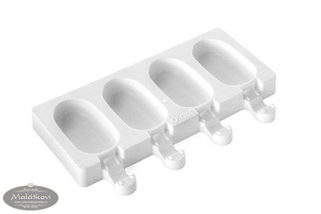 V pružné silikonové formě připravíte čtyři originální nanuky. Praktická forma má otvory na dřívka. Je velmi pružná, takže z ní nanuky snadno vyklopíte. Formu lze mýt v myčce. Rozměry jednoho nanuku jsou 70 x 33 x 22 mm. Celkový objem formy je 152 ml.