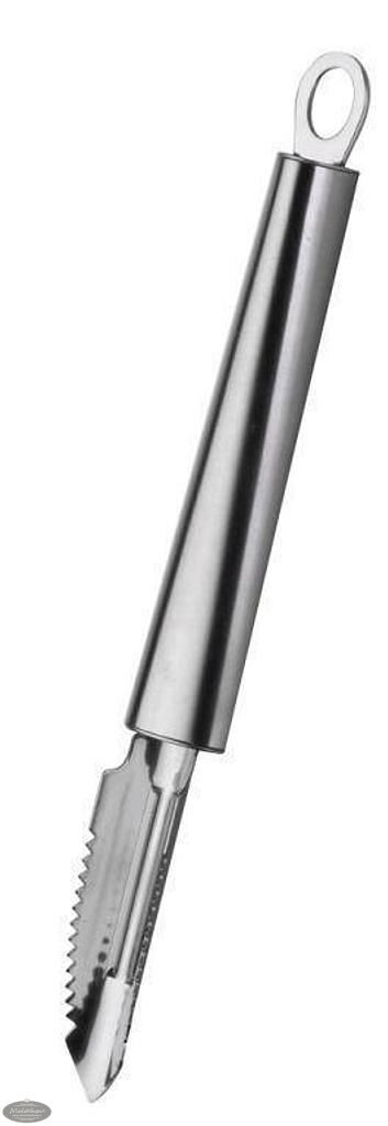 Elegantní a odolná kuchyňská škrabka LUXY z pochromovaného kovu pro snadné čištění ovoce a zeleniny. Vhodná pro mytí v…