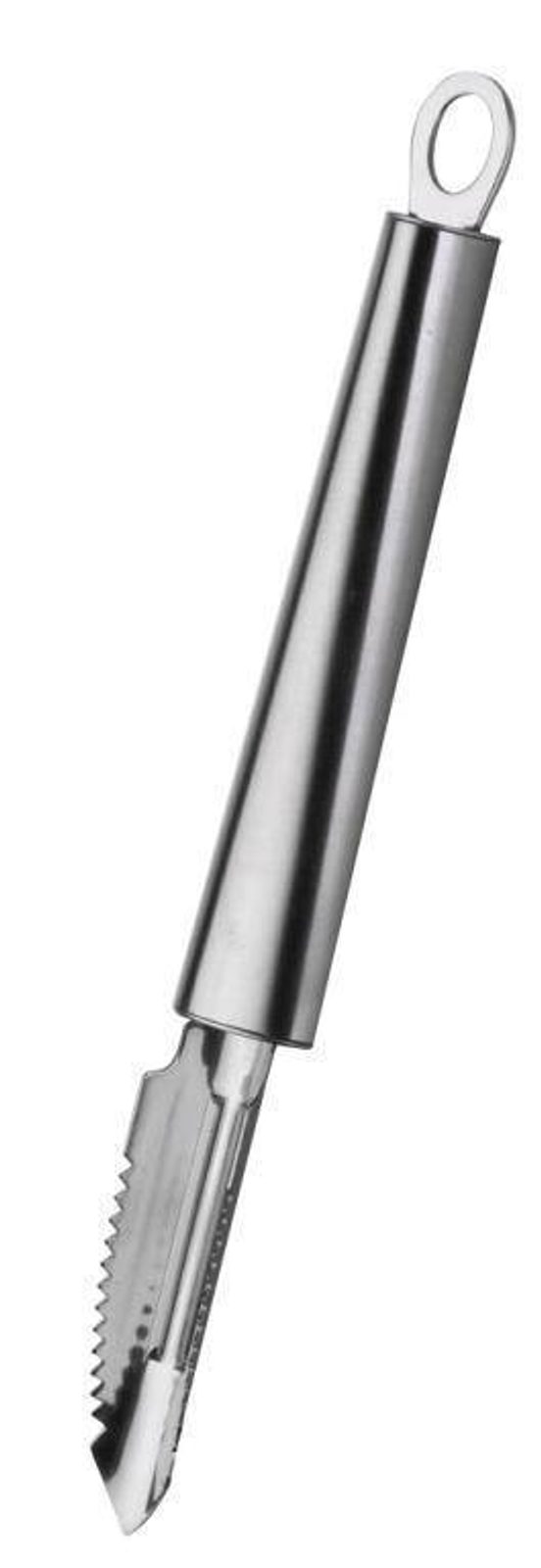 Celokovová škrabka vhodná pro praváky i leváky, hladké ostří snadno oškrábe a nakrájí zeleninu či ovoce na tenké plátky…