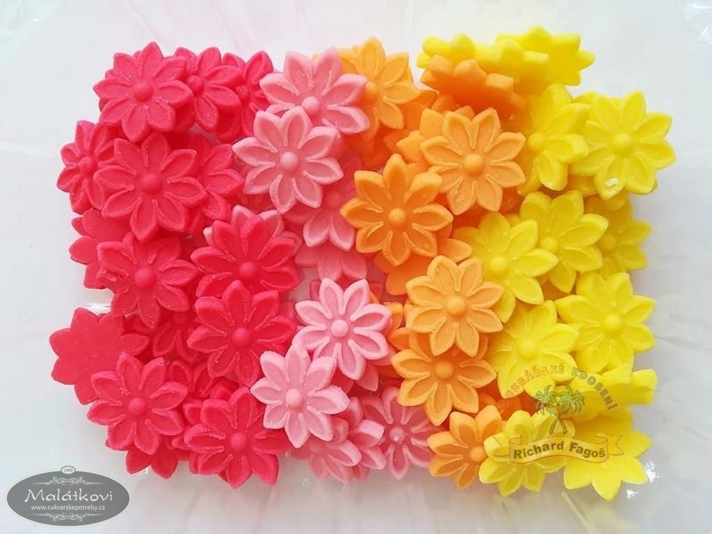 Ručně vyrobená kytička z kokosové modelovací hmoty s příchutí aroma sladkých mandlí. Použití na dorty, zákusky atd. Cena za krabičku. 80 kusů v krabičce. Velikost kytičky 2cm.