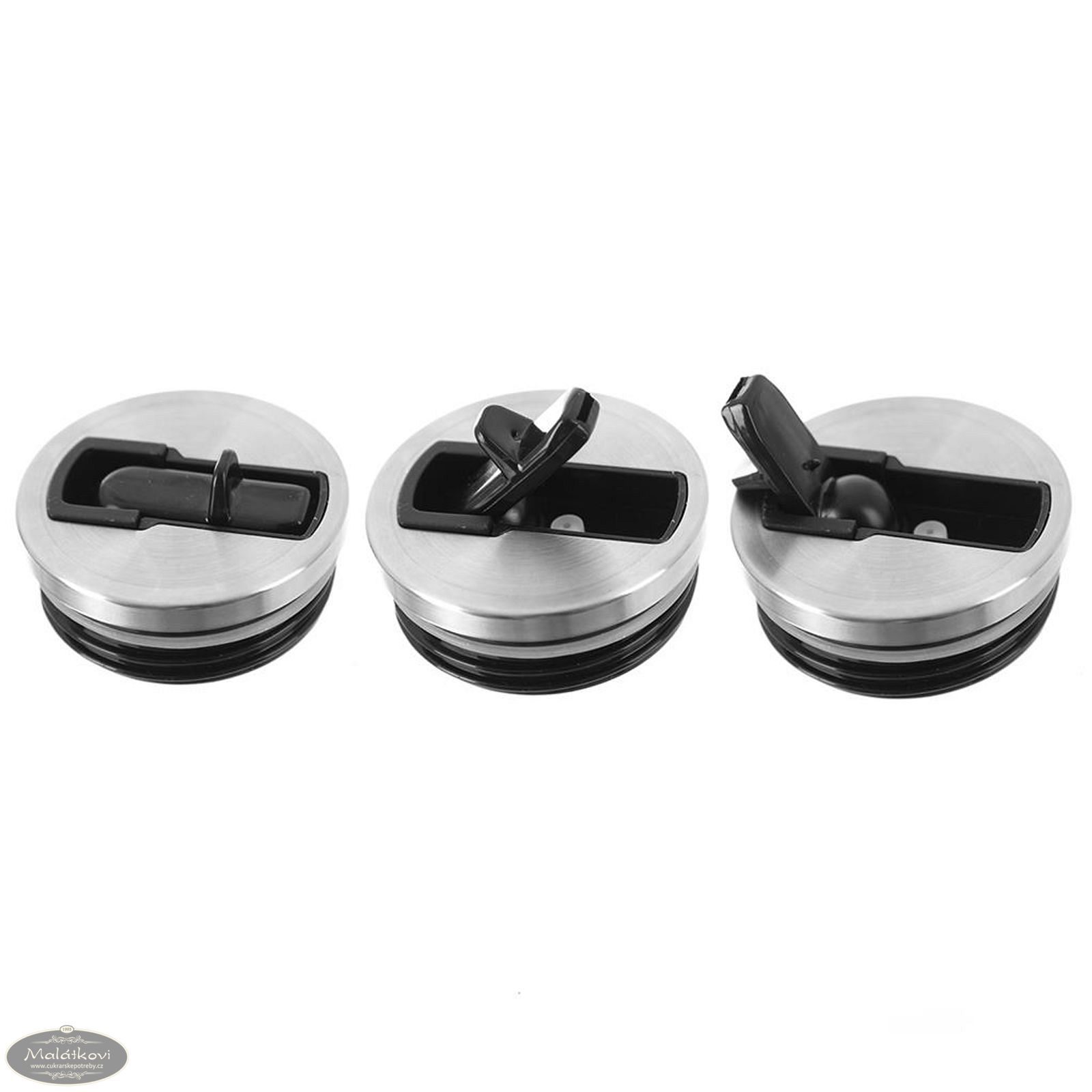 Víčko na závit se silikonovým těsněním a výklopné plastové pítko ve víčku zajišťují praktické užívání. Materiál: nerezová ocel, plast. Rozměry: objem 0,4 l, průměr 6,5 cm, výška 17 cm.