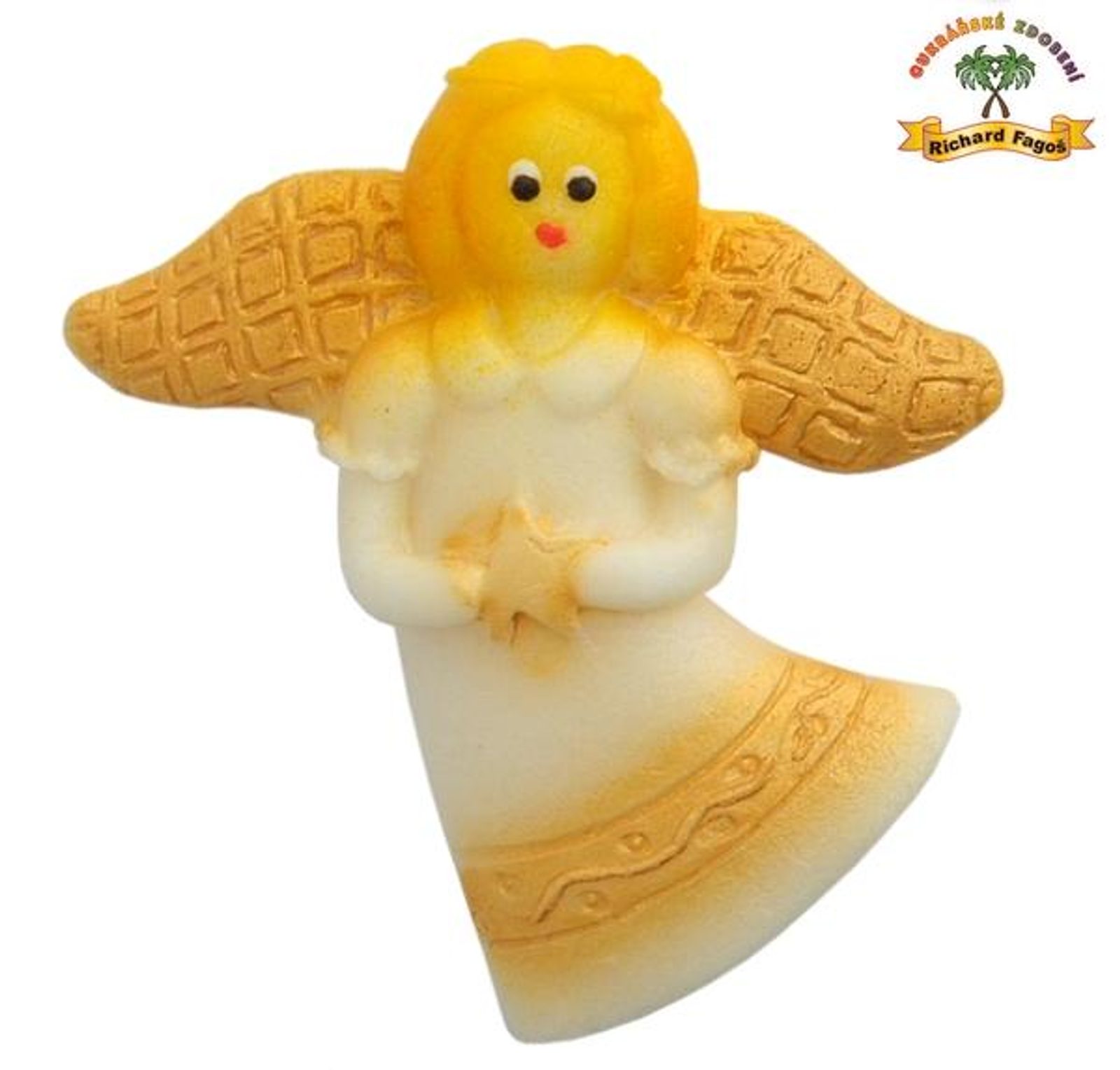 Vánoční vytlačovaná ozdobná figurka z kokosové modelovací hmoty s příchutí aroma sladkých mandlí. Použití do mikulášských balíčků nebo ozdoba vánočního stolu atd. Výška 8,5cm a šířka přes křídla 8cm. Hmotnost: 42g Minimální trvanlivost: dle data na obalu (6 měsíců od data výroby)Chraňte před slunečním zářením.
