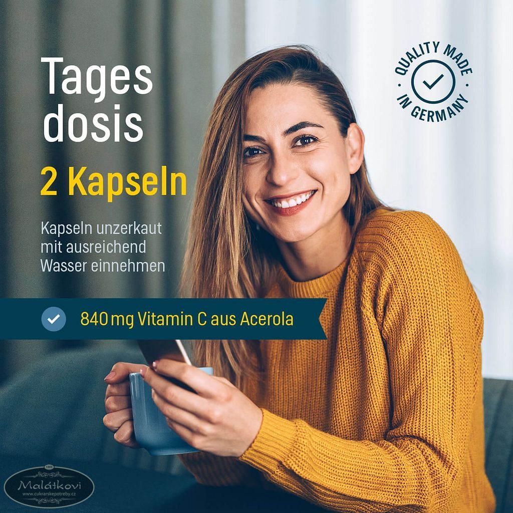 Acerola je skutečná superpotravina, která nabízí nejen vysoké dávky vitamínu C, ale i další vitamíny a minerály důležité pro každodenní vitalitu. Každá dávka (2 kapsle) obsahuje 210 mg čistého vitamínu C – což odpovídá 263 % doporučené denní dávky. To znamená pevnou obranyschopnost, více energie a menší únavu každý den!