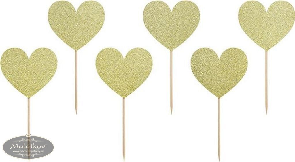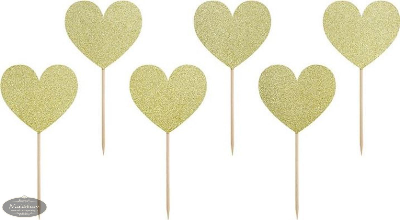 Balení obsahuje 6 kusů zlatě třpytivých papírových srdíček, která jsou připevněna na špejli. Díky kvalitnímu zpracování a pevným materiálům se snadno zapichují do dortu či cupcaků. Ať už je použijete na samostatné akcenty nebo jako součást rozsáhlejší dekorace, své hosty jistě nadchnete.