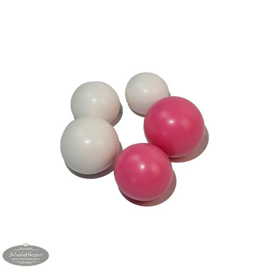 Elegantní želatinové koule v růžové a bílé barvě pro ozdobu dortů a dezertů. V balení je 5 kusů v různých velikostech pro snadné vytváření efektních kompozic. Pouze na dekoraci.