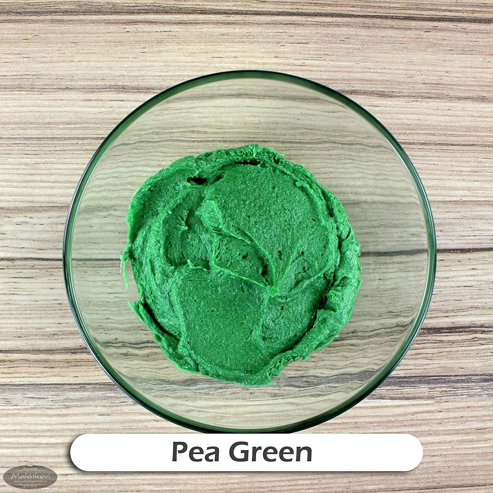 Hráškově zelenou gelovou barvou můžete obarvovat marcipán, smartflex, gum-pastu a další potahovací a modelovací hmoty. Pro získání větší hutnosti a pružnosti hmoty určené pro tvarování, je vhodné přidat prášek Tylo. Barvu můžete smíchat s malým množstvím alkoholu a dále ji používat pro potírání ploch na modelovacích a potahovacích hmotách pomocí štětce. Pro zesvětlení přidejte bělobu.
