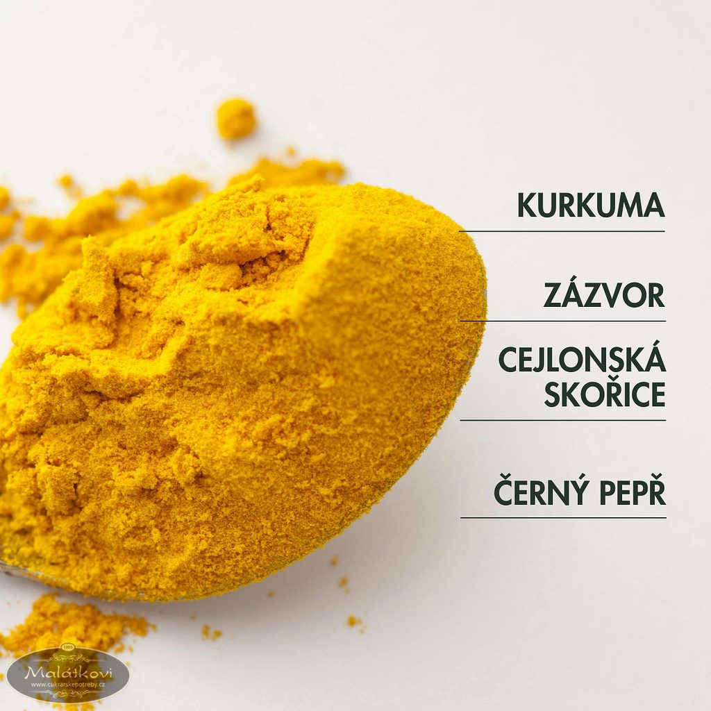 - Klasické zlaté mléko: Rozmíchejte lžičku směsi ve 250 ml teplého mléka.