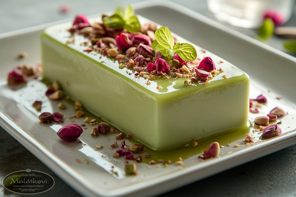 Zrcadlová poleva s pistáciovou příchutí – zelená elegance pro vaše dezerty
